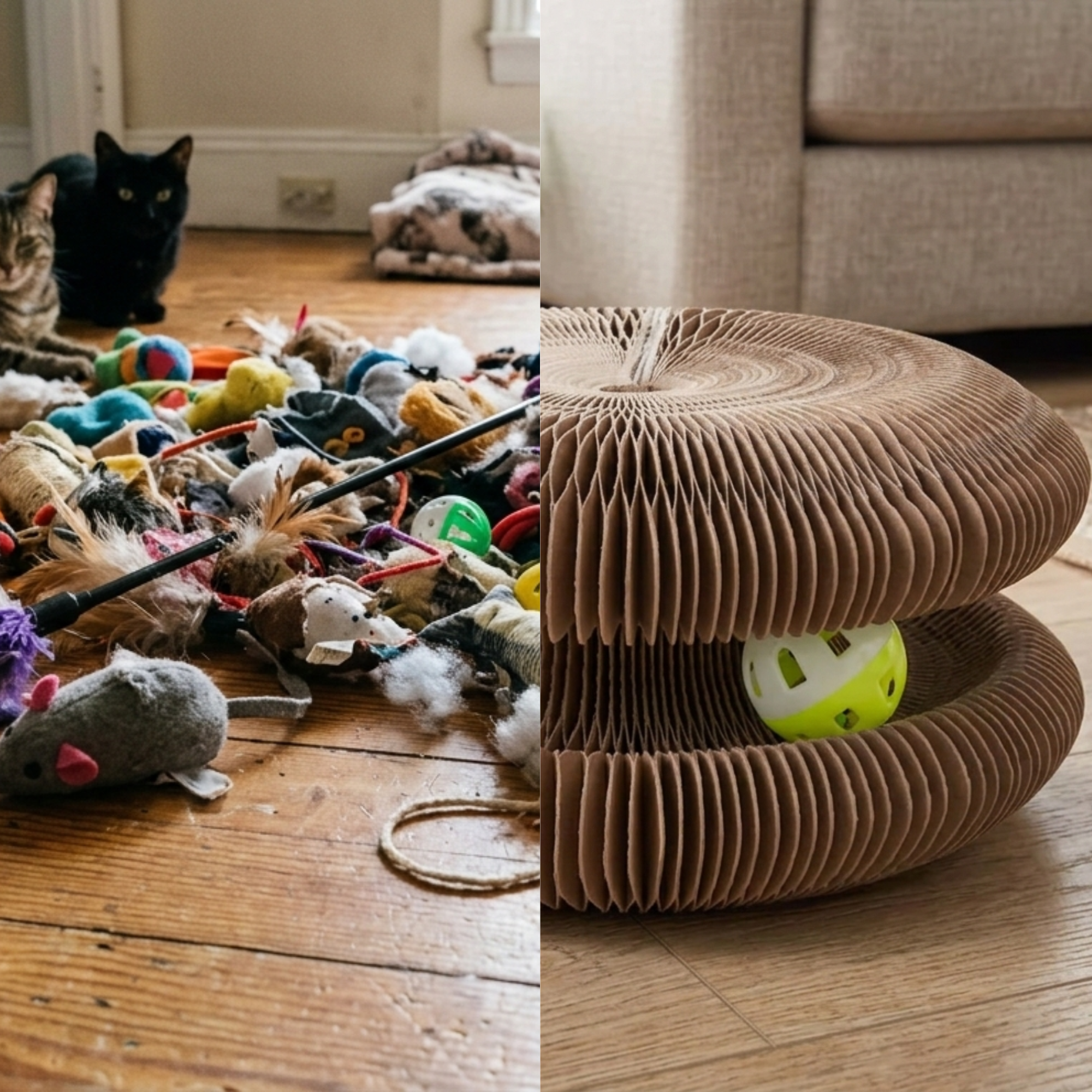 Mentre altre soluzioni richiedono addestramento o interventi costanti, questo gioco incanala automaticamente l’energia del gatto in attività positive, regalandoti una casa più tranquilla e un legame più forte con il tuo amico felino.